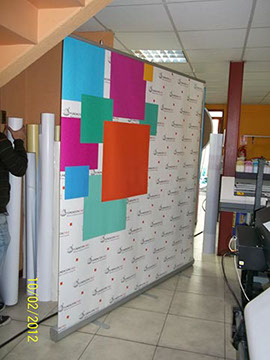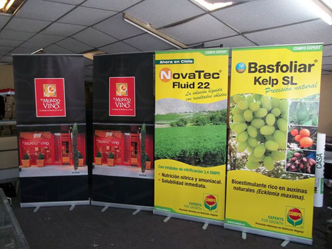 *Materialidad: Estructura de aluminio. La gráfica puede ser impresa en papel fotográfico termolaminado o en papel sintético o tela PVC. Impreso en alta resolución, suave deslizamiento de la gráfica.